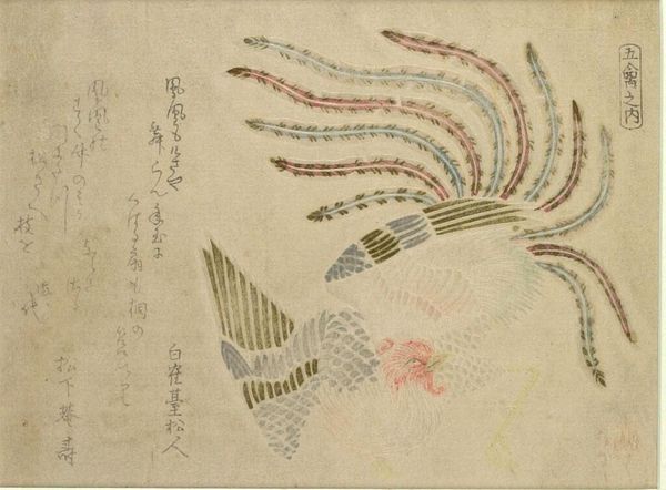 Editor: Here we have Kubo Shunman's "Candies with Crests of Popular Actors..." a print featuring poems and actor crests. I am intrigued by how everyday consumables are combined with emblems of celebrity; what should we make of it? Curator: Notice how the candies themselves, likely produced for mass consumption, bear the marks of elite performers. This conflation blurs lines between high and low culture. How does the print's creation itself – the woodblock process, the paper, the ink – contribute to this interplay of value and accessibility? Editor: So, the materials and method are just as important as the image depicted. I'll definitely look at art differently now. Curator: Indeed. Focusing on the "how" and "what" something is made of, and its social context, often unlocks deeper understandings.