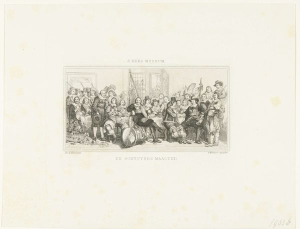 This is Maaltijd van officieren van de Handboogdoelen te Amsterdam, an anonymous artwork from 1586. Here we see a banquet, a communal meal, dominated by the presence of raised glasses. This isn't merely a festive gathering; it’s a potent symbol of unity, celebration, and shared purpose. The act of raising a glass, a toast, is steeped in history. Recall classical antiquity, where libations were offered to the gods, a gesture of respect and seeking favor. This motif resurfaces throughout the medieval period, evolving into a symbol of camaraderie and loyalty among knights and nobles. In the Renaissance, it transforms further, becoming a staple in civic and guild celebrations, solidifying bonds within these groups. The raised glass embodies a shared hope, a collective aspiration. It's an expression of the communal subconscious, a visual manifestation of the desire for harmony and success. The emotional resonance of this gesture cannot be understated; it evokes feelings of belonging and solidarity. Thus, the act of raising a glass transcends mere social custom, revealing itself as a powerful symbol passed down through time.