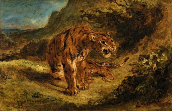 Pierre Andrieu painted this oil on canvas, *Wounded Lioness*, sometime in the 19th century. Look at the lioness, wounded and panting, drinking thirstily from the stream. This echoes motifs of suffering and vulnerability that span millennia, think of the Dying Gaul, a Hellenistic sculpture depicting a wounded warrior, or Saint Sebastian pierced by arrows. Here, the lioness, a symbol of power, is humbled. The image evokes empathy, tapping into our shared understanding of pain. The depiction of animals and humans in distress can be traced back to ancient art, serving as a reminder of mortality. The power of this image lies in its ability to engage the viewer on a visceral level. It's a primal connection to the fragility of life. The lioness reminds us that these symbols are not static; they are constantly reinterpreted, carrying echoes of the past into the present.