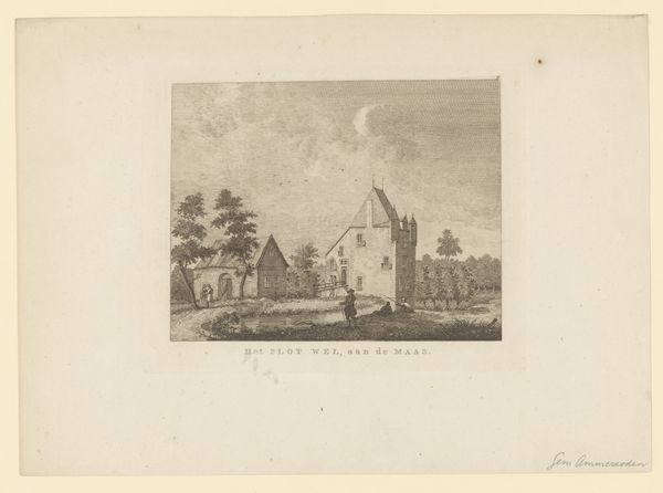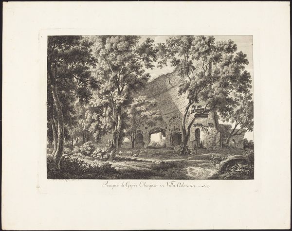 Curator: Standing before us is Johannes Franciscus Christ's etching, "Barbarossa-ruïne in het Valkhof in Nijmegen," created sometime between 1809 and 1845. It’s currently held in the Rijksmuseum's collection. Editor: The crumbling architecture strikes me first; a skeletal presence under that serene sky. A melancholy monumentality seems to radiate from it. Curator: The printmaking process itself—the labor-intensive etching technique—lends the image a kind of weight and authenticity, doesn't it? This romantic ruin rendered in a painstaking manner, drawing attention to the materials and processes of cultural memory making. Editor: Absolutely. The crumbling Barbarossa ruin clearly acts as a memento mori, urging reflection on lost power and historical shifts through potent architectural imagery. The archways are almost like eyes, gazing blankly, embodying themes of transience and decay, but what could this be signaling at the time it was made? Curator: Well, consider that this print was produced during a time of significant social and political upheaval. The act of etching this ruin and mass producing it, allowing people to have access to it speaks to how this imagery might have served the changing roles and understanding of history in 19th century Holland. Editor: A valid point! It invites viewers to connect personally with history while prompting a bittersweet reflection on time's inevitable passage, almost transforming ruin into a cultural artifact available to all. Curator: Indeed, we often associate Romanticism with a certain valorization of ruins. Looking closer you notice how it prompts consideration of how structures like this act not just as physical remains, but material repositories for communal stories and memories. Editor: The engraving clearly transmits symbolic power. Curator: For me, it underscores that the production of such artwork involved both skilled labor and capital—making what many think of high art very grounded in the everyday realities of production. Editor: Reflecting on this, the ruined arch calls for introspection of past ages and fading grandeurs. Curator: And the etching emphasizes this contrast via painstaking reproduction.