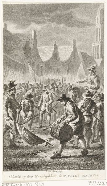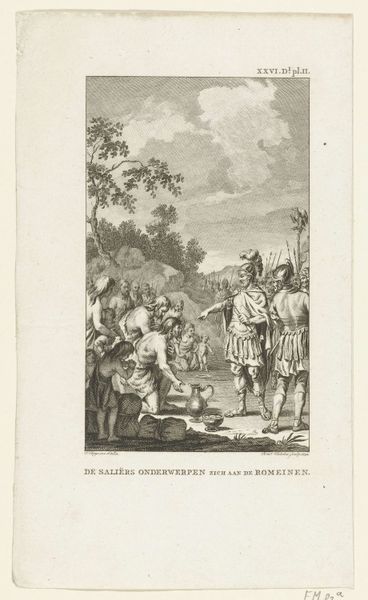 Jacobus Buys made this drawing of Graaf Floris III’s capture in 1765, using pen, ink, and watercolor on paper. A seemingly simple medium, watercolor can in fact be incredibly demanding, requiring the artist to work quickly and decisively. Consider how the material's fluidity influences the image, creating soft washes that define the figures and the landscape. The ink lends definition, etching out outlines and adding depth through delicate hatching. The relatively small dimensions intimate and immediate engagement, inviting us into this historical scene. Buys was known for history paintings, a genre that often served political purposes. The labor involved in creating this drawing – the skilled hand of the artist, the careful application of each wash – speaks to the value placed on historical narratives during this period. By using this combination of pen, ink, and watercolor, Buys elevated a simple drawing into a powerful narrative. The choice of materials and the artist's skill transformed this artwork into more than just an illustration, but a piece of cultural commentary.