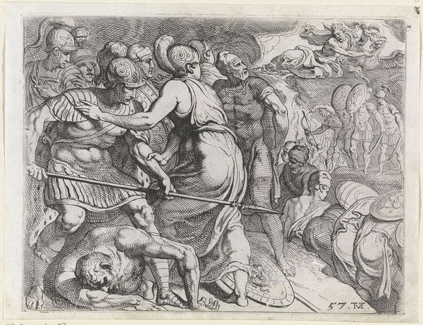 This is Hans Baldung's 'Madonna with Child and Angels in a Landscape', a print created sometime around the early 16th century. The composition immediately strikes us with its intricate detail achieved solely through line and texture. Baldung's use of dense hatching and cross-hatching constructs depth and shadow, creating a rich, almost tactile surface. The figures of Mary, the Christ Child, and the surrounding angels are rendered with a remarkable attention to form. Note the lines that delineate the folds of Mary’s robe, each stroke contributing to the overall sense of volume. The landscape, populated with symbolic elements, isn't merely a backdrop, but an active participant in the narrative. It adds another layer to the complex interplay between the earthly and the divine. Baldung masterfully challenges fixed notions of space, inviting us to delve into a world where spiritual and material realms converge.
