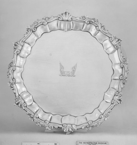 This silver salver was made by William Homer, a craftsman active during a period of significant social and political transformation in England. Homer lived through the expansion of the British Empire and the entrenchment of a class-based society. While the salver appears as a simple serving tray, it represents the complex dynamics of power and consumption during the 18th century. Silverware like this was not merely functional; it was a symbol of wealth, status, and taste. Consider the labor and resources required to produce such an item. This salver reflects the colonial exploitation that fueled the wealth of the British elite, who could afford such luxuries. The craftsmanship itself speaks to the skilled labor of artisans like Homer, whose work often went unacknowledged in the shadow of their patrons' opulence. Reflecting on this object, we are prompted to think about the human stories behind the gleaming surface. The salver serves as a reminder of the intricate relationships between identity, labor, and colonial history.