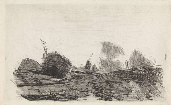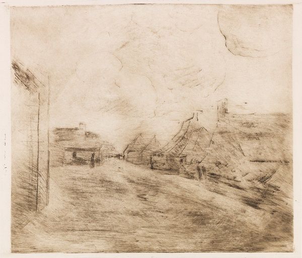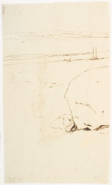 Curator: What we're looking at here is Santiago Rusiñol's pencil drawing, "Study of Steps," created sometime between 1880 and 1885. Editor: Right away, I'm getting a quiet, almost somber vibe from it. The light seems muted, everything's gray scale, and those steps... they look old, worn down like they’ve seen a lot. I feel as though I'm there during the off season and that the place I'm staring at is slightly off putting because its past prime. Curator: The work employs an interesting tension between realism and impressionism. Observe the careful rendering of the stone texture, indicative of a realist approach, yet combined with the looser, sketch-like quality more akin to impressionistic studies. Editor: Definitely. It feels unfinished, deliberately so. Like a memory fading at the edges, doesn’t it? Those fragmented lines make it seem fleeting. Also it does something where it also makes the structure much larger than life than in reality Curator: Note how the artist's selection of materials is integral to the work’s formal impact. The use of pencil allows for gradations in tone and the creation of shadow. These shadows help convey the dimensions, giving form to the work. Editor: Exactly. It’s like Rusiñol wasn’t just depicting steps, he was capturing a feeling, the history embedded in the stones. Perhaps he means something about old empires? Curator: It could also reflect a broader interest in capturing scenes of everyday life. This sort of unassuming subject matter was being investigated by many artists at this time. It also reflects back the romantic ideal and nostalgia Editor: Mmm. Now I see this as slightly hopeful too? Perhaps with these empires there may be new light, it just takes looking at something in a unique way to have that be seen, in a drawing no less. Curator: Interesting, I hadn't considered it in that light. Well, thinking about how our individual interpretation impacts engagement is central to understanding how images influence. Editor: You are always so correct, it may be how my brain is picking it up.