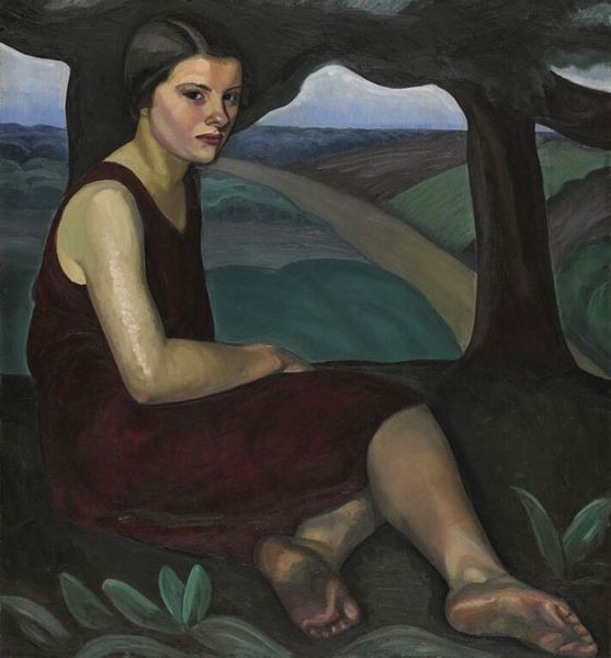 Ferdinand Hodler made this quiet painting, probably in oil, with a limited range of greens, creams, and blues. See how the marks are kind of blocky and simplified? It's like he’s figuring out how to make a figure-ground relationship using as few moves as possible. I really appreciate how the green of the bush presses forward, flattened against the figure, almost as if it wants to be her dress. And her dress! It’s like a soft, denim jumpsuit, cinched at the waist, a far cry from the stiff formality of the time. Hodler isn't trying to hide the way the paint pushes and pulls, the subtle gestures that built up the image. There’s something kind of radical in the way he sets down colors and forms with this casual honesty. It reminds me of Paula Modersohn-Becker's paintings, where she’s also trying to work out how a painting can be both solid and somehow fleeting. Art is a conversation, right?