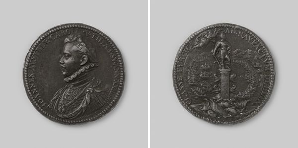 Editor: Here we have a medal titled "Schrijnwerkersgilde van Parijs, penning voor de meesters" made in 1748 by Jean Duvivier. It looks to be made of metal, maybe silver, with imagery in relief. There is something powerful about the texture of the metal and the fact that it is meant to commemorate something specific. What story does this sculpture tell? Curator: It's a fascinating piece! To understand it fully, we need to look at the socio-political context. Craft guilds in 18th century Europe were incredibly powerful institutions, weren't they? This medal isn't just decorative; it’s a symbol of that power, of a closed shop controlling not just production but also social mobility. The imagery reinforces this; what do you see on each side? Editor: One side depicts what looks like a religious scene of two figures and the other what looks like carpenters' tools under French text? Curator: Exactly. So, we have the invocation of religious authority combined with the very practical tools of the trade. This combination speaks volumes. The guild is aligning itself with both divine right and demonstrable skill. This isn’t just about woodworking; it’s about controlling access, perpetuating a hierarchy. Think about who was excluded. Were women part of these guilds? Were different races welcomed? Editor: It's strange to consider how something seemingly simple can be related to so many ideas about class and society. The role of these artisan guilds can provide some useful context when examining artwork, whether it is explicitly stated or subtly displayed. Curator: Absolutely. It encourages us to interrogate the power dynamics embedded within even the most seemingly straightforward representations. Examining objects such as these challenges us to understand society during this era, don't you think? Editor: Definitely, this piece invites a deeper exploration of how art reflects and reinforces societal structures of power and privilege.