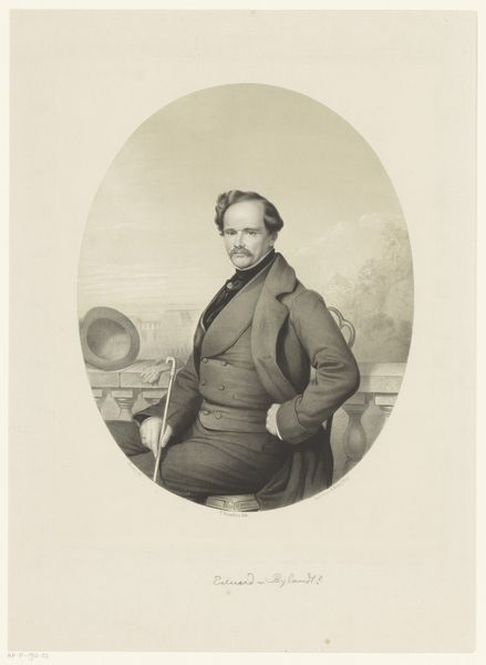 Editor: This is Charles Verlat’s "Self-Portrait" from 1868, done as an etching or engraving. There’s a quiet, intense feeling to it. He’s holding what looks like a drawing tool, and his gaze is really direct. What do you see in this piece that I might be missing? Curator: Oh, the quiet intensity is palpable, isn't it? I find myself pondering the weight of creative self-assessment here. Think about the act of portraying oneself... It’s an interesting journey, isn't it? The direct gaze, the hand clasping the tool...it speaks of purpose, doesn't it? But there's something vulnerable here too. Don't you think? Perhaps an unspoken question, directed at the viewer: “Do you see me?” It really draws me in. How does that strike you? Editor: That makes sense. It hadn't occurred to me how exposing it would be to create a self-portrait! Curator: Absolutely. I see him capturing something fleeting... something fragile. Now I am curious, doesn't it make you wonder what was going through his head? His state of mind? What questions was he grappling with as an artist? Editor: Yes! It really humanizes him in a way. Curator: Doesn't it, though? Almost like peering into his soul. Art really offers that special connection, that silent conversation, across time. What a thing. Editor: I’ll definitely think differently about self-portraits going forward. It is very telling. Curator: Wonderful. A fresh perspective, like a breath of new air into the creative lungs. Exactly why art has such allure!