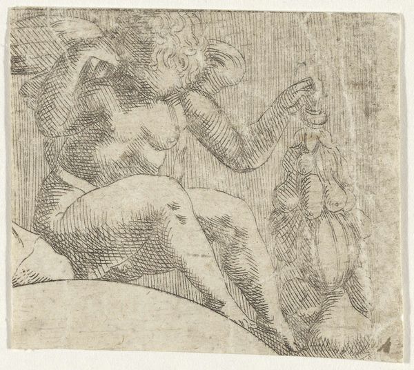 Antonio Fantuzzi's delicate etching presents a winged Cupid, a symbol laden with centuries of desire and affection. He extends a garland, a motif that speaks of celebration and honor. Cupid, derived from the Greco-Roman tradition of Eros, appears in countless Renaissance artworks, embodying both innocent love and potent sensuality. The garland he holds, often associated with festivity, echoes in ancient Roman triumphs where victors were crowned with laurel, and surfaces again in Christian art, adorning figures of virtue. Consider how these motifs have evolved. Once symbols of pagan rituals, they were gradually Christianized, imbued with new layers of meaning yet retaining echoes of their origin. The subconscious mind recognizes these repetitions, triggering associations that resonate deep within our cultural memory. We feel the push and pull between sacred and profane love, a tension made visible by the image's own history. It’s this interplay between inherited symbols and their shifting contexts that captures the profound emotional impact of art.