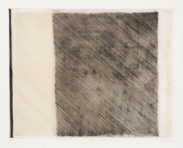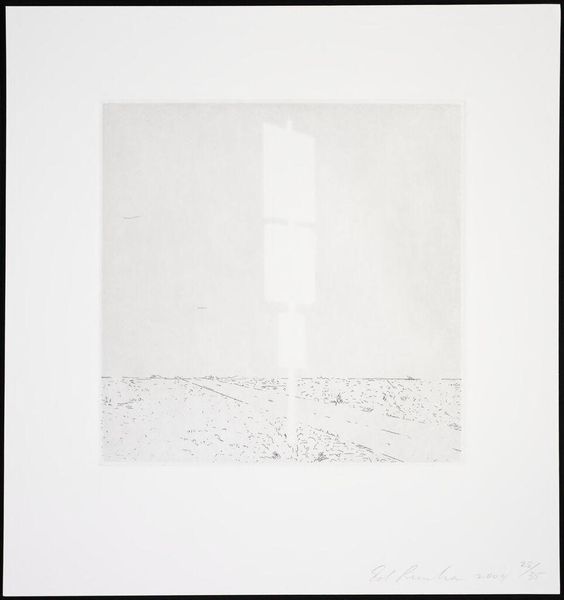 Curator: James Stroud’s print, "Industry Standard 2," currently residing here at the Harvard Art Museums, presents us with six dark, subtly textured squares. Editor: Immediately, I'm struck by its somber tone. The squares appear almost like darkened windows, each holding a silent story, evoking feelings of constraint. Curator: It is interesting how the artist compels the viewer to find variation within a rigid format. The title itself nods to the idea of conformity, perhaps a critique of industrial or societal norms. Editor: Absolutely, it feels like a commentary on standardization flattening individual expression. The texture within each square hints at the struggle against that uniformity. Each contains its own unique mark. Curator: It is important to remember the context in which the work was created and received. Was Stroud consciously engaging in a dialogue about institutional control, or was this more of an aesthetic exploration? Editor: I see it as a visual poem on the tension between structure and individuality. The piece resonates with contemporary anxieties about surveillance and the erosion of privacy. Curator: A powerful piece—it prompts us to reflect on the ways that structures shape us. Editor: It really does, a quiet rebellion captured in ink and paper.