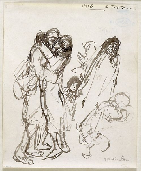 Luca Cambiaso rendered 'Abraham and Isaac' in ink, a medium that lends itself to the starkness of the biblical scene. The composition hinges on the interplay between line and shadow, with quick strokes defining the figures against a minimal landscape. Abraham's back dominates the foreground, a study in muscular tension, as he leads his son. Isaac, burdened with wood, is sketched with fewer lines, perhaps suggesting his innocence and vulnerability. The lines create a sense of movement, as if we've interrupted a silent procession. Cambiaso doesn't offer a sentimental view. Instead, through the deliberate use of line, he presents a raw, almost detached rendition of faith and obedience. This formal approach invites us to consider how an artist can convey profound themes through structure. The unfinished quality of the drawing emphasizes the moment's inherent uncertainty, reflecting a complex dialogue between artistic form and moral contemplation.