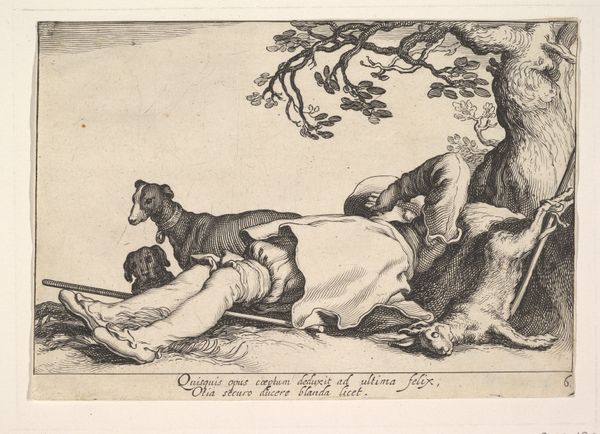 Cornelis Bloemaert created this print, “Pleasures of Occupation,” sometime in the 17th century. It’s made using the intaglio process, where lines are incised into a metal plate, and then filled with ink to make a print. The image shows two figures, apparently peasants, relaxing with their dog outside their modest cottage. The intaglio technique lends itself well to the depiction of textures. Look at the parallel lines used to model the forms. Notice how they create volume and shadow. Bloemaert uses these simple hatch marks to describe everything from rough cloth, to flesh, to the thatch roof. Intaglio printing was an important technology. It allowed images to be disseminated widely. The subject matter here is interesting. It presents a romantic view of the working class, and idealizes the simplicity of peasant life. This kind of imagery was very popular with the wealthy who acquired these prints, in a way, they were consuming an idea of leisure. So, in the end, this modest print tells us a lot about labor, class, and consumption in its own time.