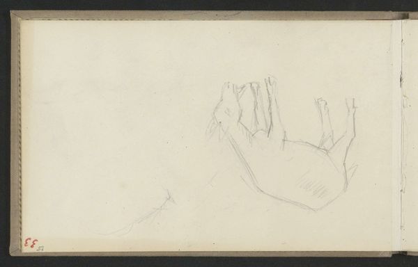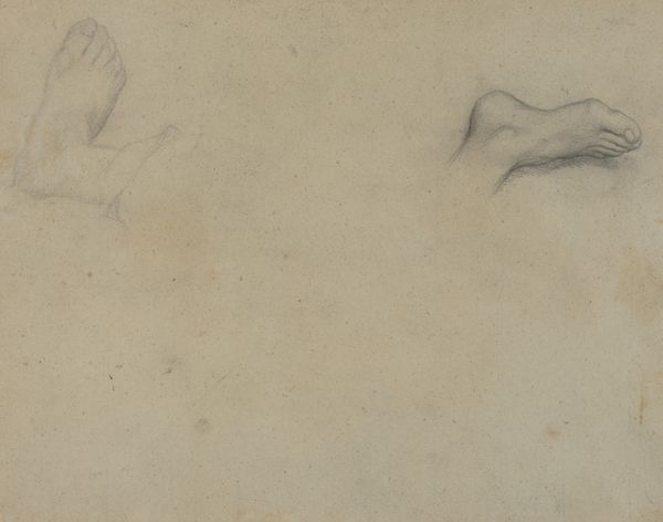 Editor: This is Jan Adam Kruseman’s "Studies van handen en een figuur," a pencil on paper drawing from sometime between 1814 and 1862, and it's currently housed in the Rijksmuseum. It’s quite subtle, almost ethereal in its lightness. What do you see in this piece beyond just a preparatory sketch? Curator: What I see is an artist deeply engaged with the academic traditions of his time, particularly evident in his study of human anatomy. But, also, an interesting reflection on the role of the artist. The detached hand almost becomes a symbol of artistic skill, separated from the body but still capable of creation. The presence of such works in the Rijksmuseum demonstrates the changing role of museums during this era, moving towards spaces that valued the artistic process itself, not just finished masterpieces. Do you notice any visual cues supporting my statement? Editor: I can definitely see how the distinct presentation of the hand could suggest the celebration of the artist's skill, or the artform itself! And I did not know that about the function of the museum shifting as well. How would this fit into the Romanticism movement then? Curator: Romanticism pushed back against the rationalism of the Enlightenment. Instead, it elevated emotions, imagination, and the individual's experience. In art, we see that often expressed through dramatic narratives. Now, while this isn’t overtly dramatic, consider that Romanticism also celebrated the creative genius. Therefore, a focus on mastering the human form connects to a fascination with human potential and expression. Where do you see it situated in our society now? Editor: That's a helpful connection to Romanticism, and it gives me a better grasp on seeing academic drawings as more than just studies. Considering art education today, works like this would serve as great case studies for new artists. Thanks for your insight. Curator: It was great exploring the confluence of academic tradition, the Romantic era, and institutional history with you through this seemingly simple drawing!