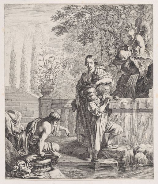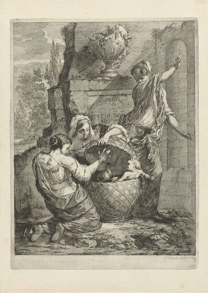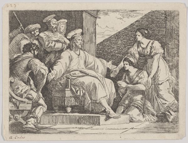 "Banditti at Market" was etched by Robert Blyth, probably in the 1770s, using an iron plate covered with an acid-resistant ground, through which the design was scratched. The plate was then bathed in acid, biting lines into the metal, which were then inked and printed onto paper. The linear quality of the etching, achieved through controlled scratching, is crucial. Blyth masterfully conveys textures and tones through carefully placed lines, creating a surprisingly complex image. The social context is also embedded. Etching was relatively accessible, enabling wider distribution of images and ideas. This print participates in that burgeoning visual culture, making commentary on class relations – the "Banditti" in the title suggests criminality, perhaps driven by economic necessity. The work involved in producing an etching - from preparing the plate to pulling the print - reflects a combination of skilled labor, the use of materials, and contextual elements. By looking closely at how this print was made, and why, we can appreciate how its artistic value is intertwined with its cultural significance.