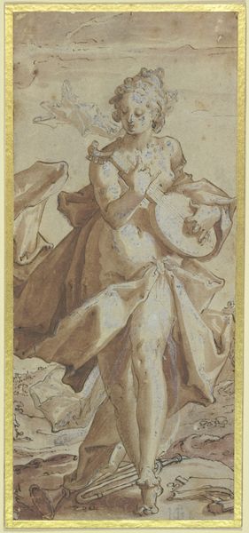 This is a porcelain figure of a Chinese Musician, made by the Meissen Manufactory. The figure is immediately striking for its delicate form and carefully balanced composition, with a color palette of soft yellows, blues, and purples. The textures of the porcelain, from the smooth skin to the intricate floral patterns on the garment, invite the viewer to examine the object closely. The figure's garment, adorned with floral motifs, and her instrument challenge established meanings of cultural representation. These details function not merely as decorative elements, but also engage with broader cultural codes and values during the height of the "chinoiserie" craze in Europe. The musician's gaze and posture exude an air of refinement, reflecting the era's fascination with exotic cultures. The figure serves as a cultural artifact, embodying the exchange of ideas and artistic styles across continents. Art does not have a singular, unchanging meaning but is a site of ongoing interpretation and re-interpretation.