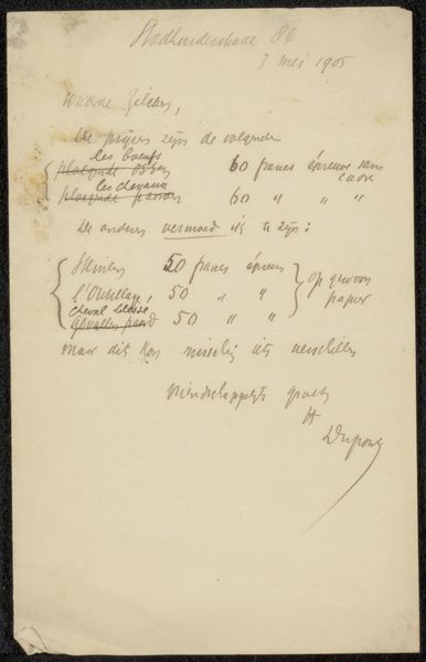 Here is a page from Johannes Tavenraat's "Notities." Undated, it reveals a glimpse into the life of this 19th-century Dutch artist. The handwritten notes, penned in Dutch, offer insights into Tavenraat's daily activities and concerns. We see references to repairing a small box in 1850, and in 1853, mention of a new box made with eight paintings. The page is a palimpsest of personal and professional life, hinting at the intersections of art, commerce, and identity. Tavenraat's notes offer a personal connection to the artist, revealing the mundane aspects of his life alongside his artistic endeavors. This intimate glimpse reminds us that artists are not just creators of masterpieces, but also individuals navigating the everyday realities of their time.