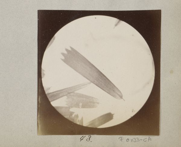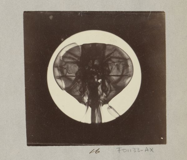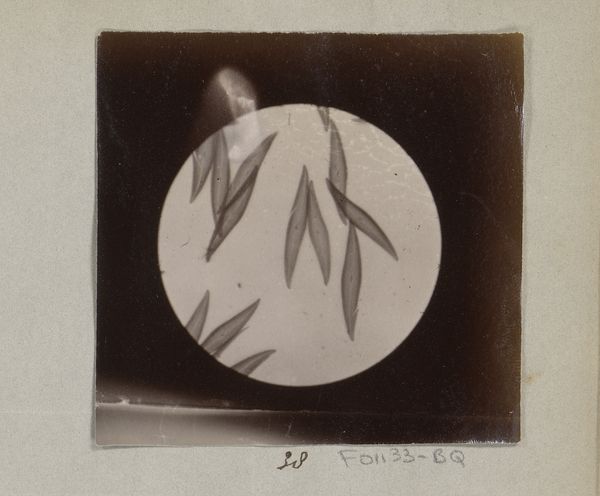 Curator: Looking at this gelatin silver print, I’m struck by how abstract it feels, almost like a celestial body against the darkness. Editor: And yet, this photograph by Marinus Pieter Filbri, dating from around 1887-1888, unveils the minute detail of something far less romantic: a microscopic view, magnified 25 times, of a scale from a tongue. Curator: A tongue! The realism of the medium is fascinating here; Filbri has given us a hyper-real view of a hidden aspect of a fish tongue. Thinking about power structures and societal expectations of consumption at that time—what’s hidden versus what’s visible—the tongue has a long association of deviancy or hidden discourse in social dynamics. Editor: The very act of photographing something invisible to the naked eye inherently alters our understanding and highlights the artist's institutional drive toward documenting an element, a body, in this particular scientific manner. The still-life aspect, focusing solely on this microscopic element, removes it from its contextual politics, but presents this as a public artefact for observation. Curator: It does prompt us to question those boundaries between science and art, especially when this form of presentation—a stark, close-up, isolated view—becomes prevalent in turn-of-the-century visual culture. Think about anxieties about industrial progress in those periods as well. To what extent is Filbri reflecting concerns of humans and machines' role in society and how technology is penetrating into the unseen worlds? Editor: These were early days for photomicrography, though, and placing the image in time is key. Filbri had likely encountered new possibilities offered by gelatin silver prints. Considering its position alongside the rise of science and technology in the public’s imagination makes this far more powerful than just an objective document. The technology itself made this possible, thus the print itself serves as a symbol and artifact of this scientific exploration, too. Curator: So, by examining its material context and theoretical resonance, we understand Filbri’s print both as a still-life study and, maybe, an understated visual protest. Editor: Yes, in essence it's about exploring the relationship of humans, our curiosity and the objects in this strange space between scientific process and how society and the media interpret progress.