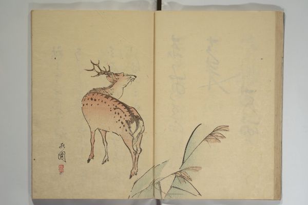 Sakai Hōitsu created this woodblock printed album in the 19th century. Hōitsu was a Japanese painter of the Rinpa school, which often drew inspiration from nature. This image of a deer evokes a sense of longing. The animal looks up toward the sky, as if listening to something we cannot hear. The deer, often considered a sacred animal, is depicted in a simplified and stylized way, capturing its essence with minimal lines and colors. The scattering of maple leaves reminds us of the fleeting nature of time. The deer and foliage might speak to the artist's own sense of identity within the natural world. This image encapsulates the Rinpa school’s ability to create a moment of quiet contemplation. It invites us to reflect on our own connection to nature and the emotions it stirs within us.