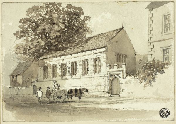 Gerrit Postma created "Kapel van Malling Abbey" using pencil. The image is dominated by architectural forms rendered with precise linework and tonal variation. The composition uses an eye-level perspective with the chapel buildings placed slightly off-center. This lends a dynamic balance to the piece. The contrast between light and shadow models the three-dimensional forms and textures, from the rough stone to foliage. Postma invites a deeper reading by destabilizing clear boundaries between categories; structure and nature merge. The arched gateway creates a frame, emphasizing the depth of the image. The formal properties of line and shading construct a play between the solid permanence of architecture and the ephemeral qualities of light and shadow. The drawing reflects an interplay between observation and the artist's interpretive intervention, blurring the distinction between reality and representation. It is within this tension that the work generates meaning, inviting viewers to engage in an ongoing process of interpretation and reflection.