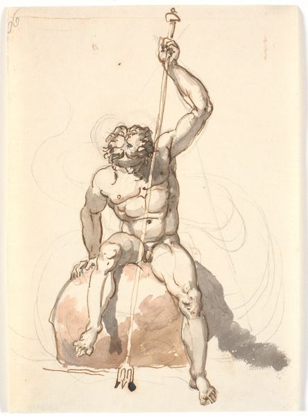 Editor: Here we have "Abraham's Sacrifice," a pen and ink drawing on paper, by Francesco Salviati. The tension in the scene is palpable; you can feel Abraham’s internal struggle mirrored in his muscular, almost strained, pose. How do you interpret this work, especially concerning its iconic status and the weight it carries? Curator: It's powerful, isn't it? The image itself, divorced from the narrative, speaks to the complex interplay of obedience and morality that resonates deeply across cultures and throughout history. The very act of sacrifice, isn’t it present in our collective unconscious? This resonates beyond religious doctrine; it embodies that ultimate test of devotion, where personal ethics clash with higher authority. What kind of symbol do you see when you look at Abraham's gaze? Is it focused on his son or is his gaze internalized, seeking divine acceptance? Editor: I think his gaze is internalized. To me, his internal struggle feels bigger than his present moment. So, this image isn't just about blind faith, it's about the agonizing negotiation between what we are told to do and what we feel is right. Do you think the artist purposefully chose pen and ink to showcase this dilemma? Curator: Precisely! And note how Salviati, a master of Mannerism, manipulates the figures—their elongated limbs, their twisted poses. He amplified the emotional discomfort, transforming a biblical event into a psychological drama. Think about how the Renaissance viewed man as the "measure of all things"; but here we are confronted with the limits of human agency, trapped between faith and personal conviction. Don’t you think that this image serves as a potent reminder of that delicate balance between obedience, faith, and ethics in the broader human experience? Editor: Absolutely, I will never look at "Abraham's Sacrifice" the same way again. Thanks so much! Curator: The pleasure was all mine. Reflecting on symbols reveals our shared human story.