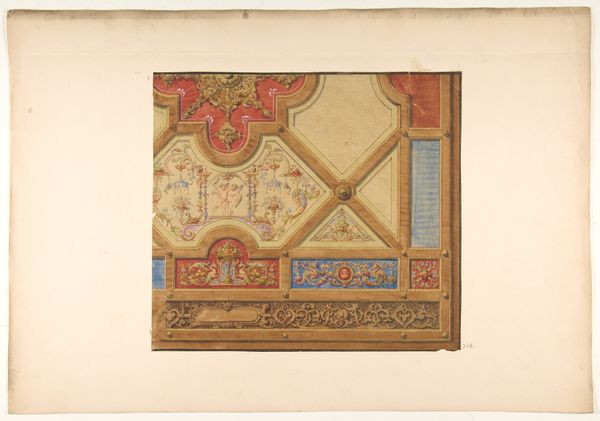 Niels Larsen Stevns made this watercolour copy of an early Christian mosaic, with notes on the colours, on paper. Look at the way the colours are applied – thin washes, building up these complex geometric forms. You can really sense the process of artmaking here. The texture of the paper allows the colours to bleed and blend, giving the whole thing a kind of luminous quality. Notice the juxtaposition of the red, blue, and ochre, how they create a vibrant visual rhythm. The thinness of the paint is key, it's not about covering up, but letting the light through. See how some of the lines are not quite straight, the circles not quite perfect. It’s like the whole image is breathing. For me, the little rosette shapes are so charming. The piece reminds me of the work of Hilma af Klint in its use of geometric forms and spiritual symbolism. Like Klint, Stevns seems to be exploring something beyond the purely visual, a deeper connection to history. Ultimately, it's this sense of open-endedness, of art as a continuous dialogue across time, that makes it so compelling.
