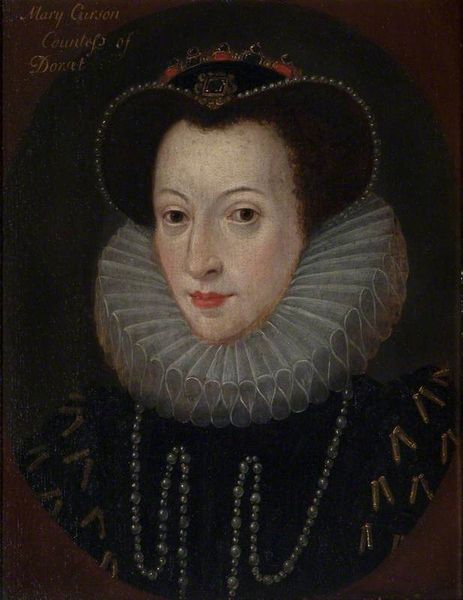 Curator: Looking at this 17th-century portrait miniature identified as “Maria Stuart (1542-87), koningin van Schotland,” my immediate reaction is how delicate it is. The artist's focus on such fine detail within a constrained circular space seems like a tremendous feat. Editor: Indeed. The composition leads the eye directly to the sitter’s face, framed by the ruff and dark bonnet. The severe formality of these shapes are softened only slightly by her curly hair, giving us insight into the way aristocratic portraiture functioned during the late Renaissance. Curator: Beyond its formal qualities, one cannot overlook the subject: Mary, Queen of Scots, whose life was fraught with political intrigue and tragedy. The somber color palette—the blues, blacks, and creams—contribute to a sense of melancholy, echoing her life’s tribulations. Editor: You know, the pearls and lace of her attire serve a dual purpose. As objects of status, they project dynastic power, and on another register they symbolize purity, perhaps as potent political reminders to counter narratives of treason or licentiousness. Curator: I'm struck by the precision of the brushstrokes. The artist seems deeply concerned with the proper rendering of surfaces. Look at the way light plays on the fabric of the ruff. There's almost an obsessive attention to detail. Editor: Well, in commissioning or acquiring the portrait, those seeing it later might use her likeness as a cipher. Think of the symbols it presents: defiance, Catholicism, claims to a contested throne, or even early modern notions of feminine authority. Curator: So, to appreciate this small artwork fully, we are compelled to consider her legacy, the events of her reign. Without these considerations it would merely be a collection of lines and shades rendered on some indeterminate material. Editor: Right, and that's where this miniature portrait becomes more than just an exercise in artistry or display of power. It becomes a touchstone, sparking memories and interpretations that continue to reverberate centuries later.