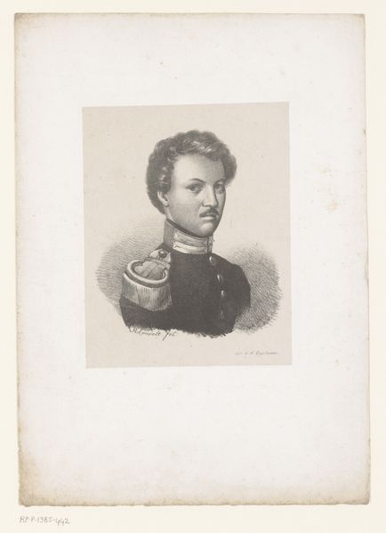 Curator: Here we have a pencil drawing titled "Portret van luitenant Van Yperen," believed to have been created sometime between 1822 and 1874 by Christian Heinrich Gottlieb Steuerwald. What's your initial reaction? Editor: Intimate, almost melancholic. It's delicate, isn't it? The light, the soft hatching—he feels very… human. A world away from battlefield heroics, more like someone's favorite uncle, drawn in a quiet moment. Curator: Indeed. Steuerwald's rendering draws on academic art conventions. Notice how he uses graphite to build tonal layers, paying close attention to the details in Van Yperen's uniform. It reflects the romantic interest in both the individual and the trappings of power during the 19th century. Editor: It's fascinating how a simple medium can convey such a sense of gravitas. You think about the social context—a portrait was often a symbolic possession. Something to remember someone by. How accessible was such an image at this time? Curator: It definitely represents a certain level of societal access. While photography was developing, portrait drawings provided a more attainable option for a personal keepsake compared to painted portraits, though the artistry was clearly present regardless. Editor: Yes, and I think the very *making* of a portrait like this suggests an intimacy beyond societal expectation. It's the artist, the sitter, the quiet, painstaking process. You feel the hours in it. Does that feed into the value we assign these things as objects of beauty and importance? Curator: That's an interesting point! It brings up the discussion around craft, and skill in these objects being intertwined with inherent symbolic worth and social significance. Editor: Exactly! And perhaps there’s some sort of… dare I say *love* that transfers? Either in the subject portrayed, or, perhaps more appropriately, the actual act of the production of the piece itself. Food for thought! Curator: Thank you. Editor: Of course, it was my pleasure!