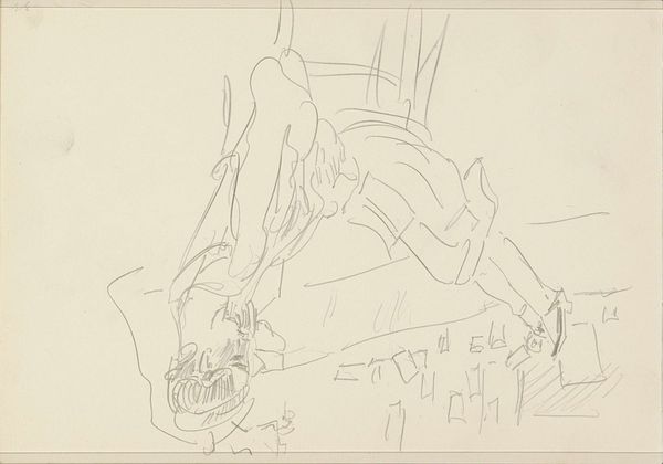Editor: Here we have "Woman and a Man, Possibly a Clown," a pencil drawing by Isaac Israels, dating from around 1915 to 1925. It has such a raw and immediate quality, the lines are so expressive. What stands out to you in this work? Curator: The immediate effect arises precisely from the economy of line. Observe how Israels employs hatching and cross-hatching, particularly around the presumed clown's collar, to generate volume and shadow. It’s a lesson in the fundamentals: line, value, shape. What about the composition draws your attention? Editor: I think it's the off-kilter placement. They are near the top, with all this blank space around them. It's like we are catching them in a candid moment. Curator: Precisely! It abandons formal compositional strategies in favor of capturing, with swift strokes, the essence of the figures. The cropping contributes to this sense of immediacy, preventing a complete reading and prioritizing instead the dynamic interaction between lines. Consider, as well, the use of the white space of the page – not as background, but as an active component in defining form. Do you see how that absence of detail creates its own sort of energy? Editor: Yes, I see. It is unfinished, but deliberate. The negative space is as important as the marks he made. Curator: A sophisticated reading. Consider then how that same restraint evident in the drawing, the near sketch-like quality, is a testament to the artist’s mastery of form. Editor: It is interesting how the formal elements, the very bare bones of the drawing, create such a palpable feeling. Curator: Indeed. Reducing an image to its formal elements does not diminish its communicative power; rather, it amplifies the power of seeing and mark-making. I trust this sharpened your observation skills? Editor: Definitely. It's a reminder that so much can be said with so little.
