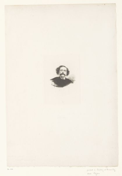Editor: So, this is Max Slevogt’s "Small Self-Portrait with a Cigar." It's an etching, I believe. It feels so informal, almost like a snapshot. What strikes you most about it? Curator: The cigar is a clue. In the late 19th and early 20th centuries, it was a common symbol of bourgeois identity and artistic freedom. Self-portraits like this contributed to shaping the public image of the artist. What does it suggest about Slevogt's self-perception? Editor: Perhaps he's showing himself as a confident, independent figure? It's interesting how even a small detail like that can carry so much weight. Curator: Exactly. These choices are deliberate acts of self-representation, playing into and sometimes subverting societal expectations of artists. Editor: I never thought about self-portraits in this way. Curator: Considering the politics of imagery changes how we understand the artist's intent and its reception by the public.