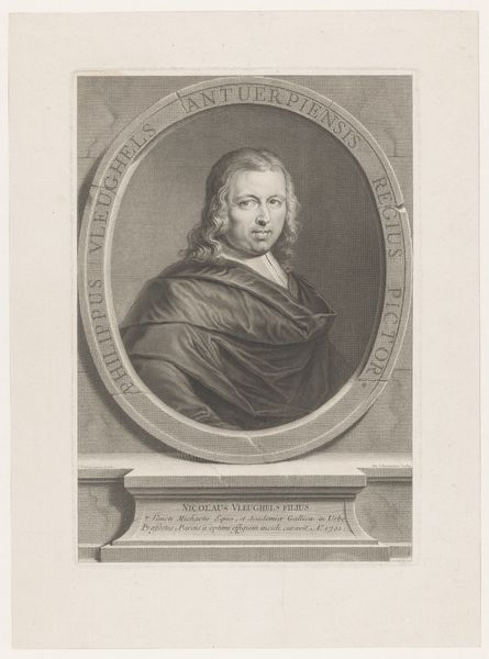This print of Johann Daniel Donat is by Christian Gottlieb Geyser. Its composition, primarily rectilinear, has a portrait in the center, framed within an oval and overlaid on a rectangular block, which gives the overall design a sense of classical order. The artist arranges simple shapes against textured surfaces, which creates a dynamic tension. The oval introduces a soft contrast to the surrounding rigid forms, softening the underlying geometry. Observe how the texture of the background, with its brick-like pattern, contrasts with the smoother finish of the portrait itself, dividing the world of the sitter from the world he inhabits. This contrast extends further to the lettering above and below, which serve as semiotic markers, anchoring the image and providing a context for interpretation. They remind us that what we are viewing is not merely a likeness but a carefully constructed representation designed to impart meaning. The image, therefore, becomes an exercise in decoding.