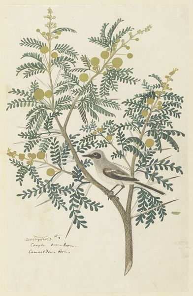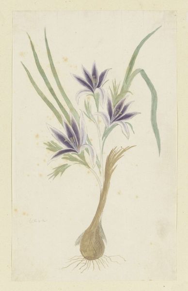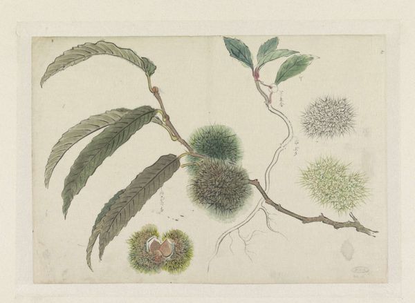 Curator: The delicacy of this watercolor by Herman Henstenburgh, possibly dating from 1685-1687, is really captivating. It’s titled “Brem (Genista)” and showcases, as the name suggests, a type of broom plant. Editor: It’s striking how something so understated can be so engaging. The muted palette really speaks to the botanical interests of the time. Do you feel that this kind of work had social value at that point? Curator: Absolutely. Dutch Golden Age botanical art wasn’t just pretty; it reflected growing scientific curiosity and colonial expansion. Each carefully rendered leaf and blossom was almost like a data point, a record in the burgeoning field of natural history. The broom plant, genista, might have held particular significance depending on its uses – medicinal, ornamental, agricultural, depending on who was commissioning the art, it takes on additional weight. Editor: So, in a sense, these artworks became visual inventories, contributing to how the Dutch Republic understood and controlled its world? I'm fascinated by how such tranquil images could reflect something as charged as colonial activity. Curator: Precisely. But let's consider what the flowers themselves would symbolize at the time. They stand out in pale purple hues. Considering the symbolism of colors and flowers in the period, this detail infuses this work with more than just scientific value. The botanical, philosophical, even psychological connections that would exist for people as they appreciate them makes it extremely important, in ways that go beyond natural history. Editor: I see your point. The act of closely depicting these flowers—with their light and shadow, texture and form, and distinct coloring—endows them with a subtle yet undeniable dignity. And while the light colors have to be attributed to the choice of paper and to the fading process with age, what matters is the impression the work makes on us, in its state right now. Curator: That tension, between a pursuit of accurate representation and this gentler almost contemplative feel is, for me, the reason it still draws us in now. These paintings document much more than the mere look of flora and plants. Editor: Indeed. Thank you for unveiling all the hidden histories it embodies. It prompts us to ponder what beauty really signifies when placed against a wider backdrop of political context.