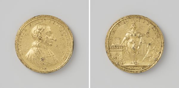 This medal, now in the Rijksmuseum, was made by Laurent Joseph Hart in the mid-19th century, and presented to King Willem II. It's crafted from a precious material: gold. The medal's small scale belies the labor involved in its creation. The process of die-striking would have required skilled artisans and specialized equipment. The designs are first incised into steel dies, then the precious metal is impressed using tremendous force. The resulting impression captures incredibly fine details, from the figures of the King and the archer, to the lettering around the perimeter. The weight and luster of the gold underscore the honor bestowed upon the King. While medals like this one might seem purely decorative, they were in fact deeply embedded in social networks, marking allegiances and celebrating power through the skilled manipulation of materials. This challenges the distinction between art and craft, and highlights the artistic choices involved in even seemingly functional objects.
