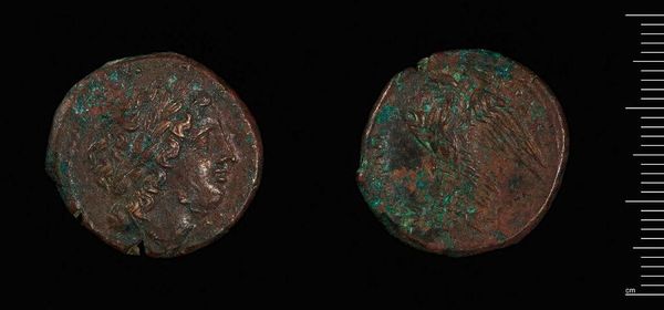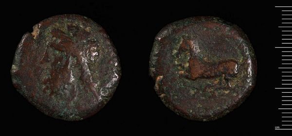 Curator: Before us is a coin, specifically a Coin of Philip V of Macedonia. Editor: Oh, wow, it looks like it's been on quite the journey. It almost feels like holding a tiny, weathered planet in your hand. Curator: The coin presents a fascinating study in relief and texture. The material's patination introduces an element of chance, altering our perception of its original design. Editor: It really does make you wonder about all the hands it's passed through and the stories it could tell. The wear gives it character, like wrinkles on an old friend. Curator: Indeed, it prompts us to consider the coin not merely as currency but as a cultural artifact, laden with historical significance. Editor: You know, looking at it now, I can't help but feel a connection to the past. It's a humble piece, but with an enormous narrative. Curator: I concur; the convergence of form and history is certainly compelling. Editor: Absolutely. It really makes you appreciate the passage of time, doesn't it?