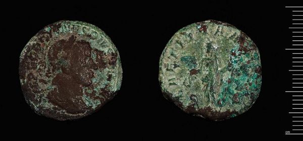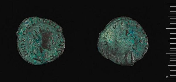 Editor: Here we have an Antoninianus, a Roman coin of Claudius II Gothicus. It's small, and weathered—a little green with age, like an old penny found in the garden. What stories do you think this coin could tell? Curator: Oh, if only coins could talk! This little bronze beauty whispers of power, doesn't it? Imagine the hands it passed through, funding legions, maybe even buying loaves of bread. That verdigris is the kiss of time itself. Editor: It’s like holding a tiny piece of a fallen empire. I never thought a coin could feel so weighty. Curator: Exactly! It’s a tangible link. A king's face on a coin, traveling the world; makes you wonder about all the things we take for granted, doesn't it? Editor: It does. I guess I hadn't considered the silent stories objects can carry. Thanks for sharing your insights! Curator: My pleasure! Isn't it wild to think that even something small can offer a journey through history?