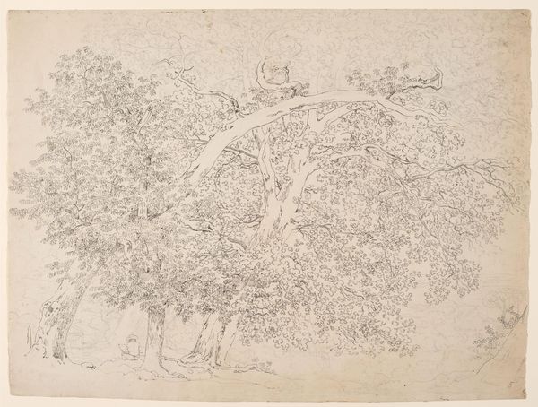 Editor: This delicate pencil drawing, created by Joshua Cristall, shows a rocky landscape. It feels so light, almost ephemeral. What do you see in this piece? Curator: It's a dance of light and shadow, isn't it? I love the way Cristall captures the essence of the rocks and foliage. It’s as if he’s sketching a memory, a fleeting moment in nature. What do you make of the composition? Editor: It's interesting how the eye is drawn to different parts of the drawing; it is not static at all. Curator: Exactly! It feels less like a finished piece and more like an invitation to wander, doesn't it? A reminder that art can be about exploration as much as documentation. Editor: I hadn’t considered that. It’s like a visual poem! Curator: Precisely! Cristall invites us to find beauty in the incomplete, the suggestive.