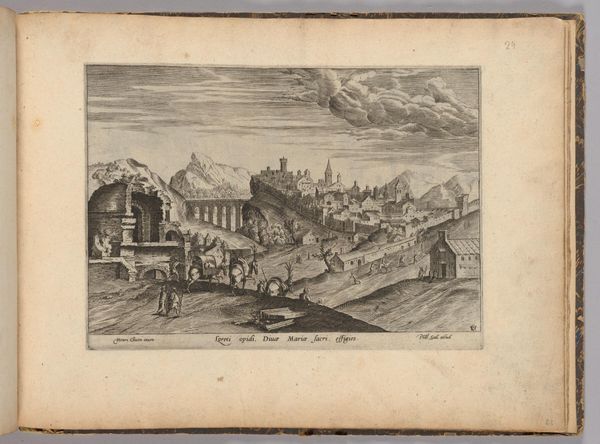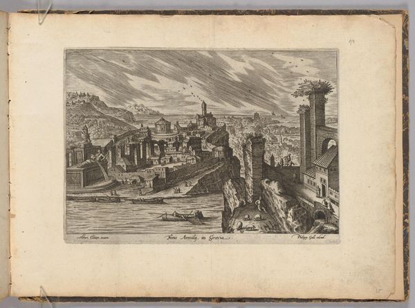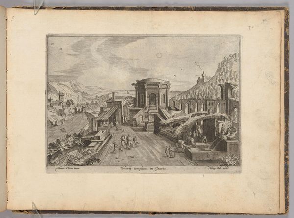 Editor: This is Hendrick van Cleve III's "The Temple of Fortune, Palestrina," an etching. The detail is incredible, but there's a strange tension between the ruined temple and the bustling city around it. What statement do you think the artist is trying to make here? Curator: It's a powerful image, isn't it? Consider that van Cleve was working in the late 16th century, a period grappling with shifting power structures and religious upheaval. The temple, a symbol of ancient Roman power and belief, is presented amidst a changing landscape. Who benefits from the narrative of ruins? Editor: So, you're suggesting the depiction of the ruin is itself a political statement? Curator: Precisely. It asks us to consider what "fortune" truly means – is it the glory of the past, or the resilience of the present? What is lost, and who controls the narrative of that loss? Editor: That adds a whole new layer to how I see the piece. Thanks! Curator: Indeed! Ruins are never neutral; they speak volumes about power, memory, and the stories we choose to tell.