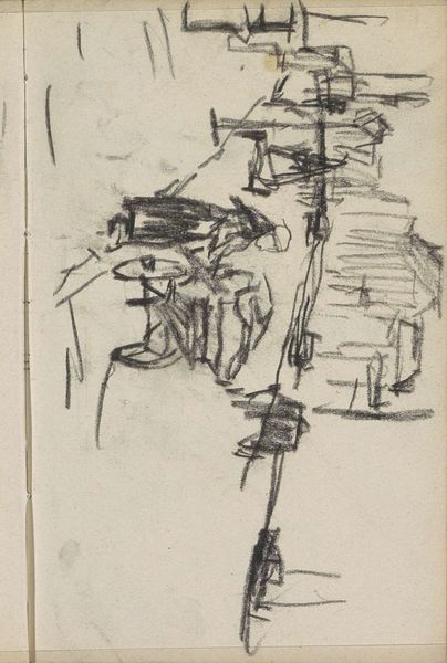 Editor: So, this is "Carriage in a Landscape," a pen and ink sketch by George Hendrik Breitner, dating from around 1886 to 1903. It feels almost like a fleeting thought, doesn't it? Rough and ready. What strikes you when you look at it? Curator: It's interesting, isn't it? A peek into the artist's mind. For me, it feels like Breitner is capturing the essence of movement and transience. The chaotic lines mirror the hustle of urban life, perhaps a precursor to his later, more polished depictions of Amsterdam. Do you sense that fleeting quality as well? That unfinished energy? Editor: Definitely. It's the antithesis of static. Like he was trying to capture the feeling of the carriage more than the precise details. What does this roughness mean for interpreting the work? Curator: Precisely! That's the magic, isn't it? Instead of a detailed record, we get the artist's raw impression. The roughness invites us to participate, to fill in the blanks with our own experiences and imagination. Consider the time period: Photography was becoming more widespread. Artists no longer needed to be mere recorders of reality, freeing them to explore inner landscapes, to capture feeling instead of fact. Is that something you consider? Editor: That makes so much sense. I guess I hadn’t really thought about it in that context. It’s more than just a sketch then, it’s a little window into a shifting world. Curator: Absolutely. It reminds me of jazz music. A spontaneous riff, a fleeting moment of improvisation caught on paper. Now, when you look at it, what feelings does it evoke for you? Editor: Curiosity mostly. It makes me want to see the finished work. It's a reminder that every masterpiece starts with these little experiments. Thanks for pointing that out! Curator: And thank *you* for those excellent observations. I feel as if I've looked at it with fresh eyes! A conversation is truly a way to approach art!