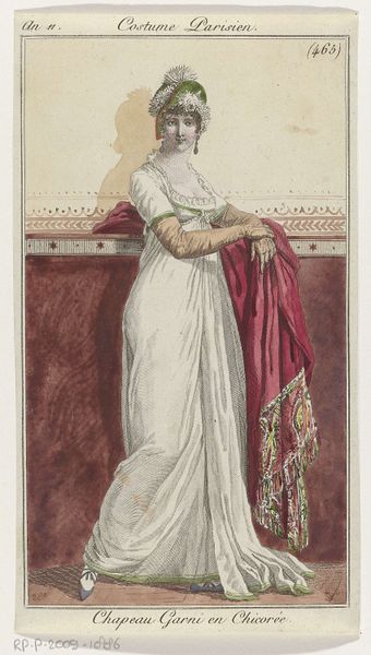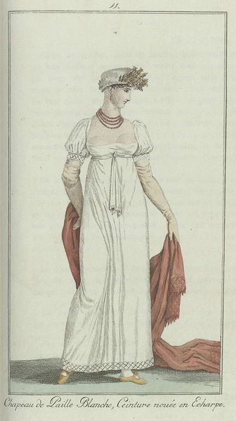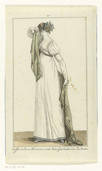 This anonymous print, created in July 1807, is part of a journal of fashion, luxury, and taste for women. The dominant symbol here is the garland, or 'guirlande,' a motif tracing back to ancient rituals of celebration and reverence for nature. The garland encircling the young woman’s head recalls similar adornments in classical antiquity, often associated with goddesses of springtime or fertility. In Roman art, garlands signified joy, peace, and victory, adorning temples and public spaces alike. But consider how this symbol has shape-shifted across time. In Renaissance paintings, floral wreaths might signify both earthly pleasure and spiritual devotion, a duality still present today. Here, the flowers are not merely decorative but psychologically resonant. They symbolize youth, beauty, and the fleeting nature of time, reflecting a collective memory of nature’s cycles and a subconscious longing for renewal. This image engages us on a deep, perhaps unconscious level, reminding us of the cyclical progression of life and the perennial allure of beauty.