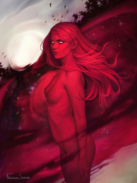 Curator: This painting, entitled "Melody and Silence", is the work of Fernanda Suarez. It seems to be an acrylic on canvas, although information is limited. What are your first thoughts? Editor: Ethereal, definitely ethereal. There’s something very dreamlike and haunting in the almost monochromatic palette. The lavender tones give the image a calming yet sorrowful feel, don't you think? Curator: It's certainly impactful. Suarez seems to be playing with traditional portraiture, updating it through a modern fantasy art style, almost a digital romanticism. There's a push and pull, given the female nude is present. I wonder if there is a desire to create dialogue surrounding romanticism today? Editor: The cloud imagery swirling behind her gives this figure a goddess-like aura. Clouds are rich in symbolic weight, representing transition, the subconscious, or even divine intervention across cultures. The way the lower part of the body almost dissolves into a milky horizon line—it enhances the dreamlike quality and links the figure intimately with the natural world, doesn't it? Curator: Perhaps the nudity and dissolving lower body points to societal pressures related to female representation in contemporary digital environments, and a negotiation to establish bodily sovereignty in relation to digital landscapes. We also see a prevalence of fantasy art across new art movements that focus on creating safe digital spaces for often marginalized figures, which further supports the social context behind "Melody and Silence." Editor: I can see that. And the silence that the title invokes - maybe it references repressed thoughts and dreams struggling to make themselves heard, now freed, but are still in limbo between this realm and another. It really allows us to place our own interpretation. Curator: Right, as well as inviting a dialogue that promotes agency within the increasingly digital landscapes where artists establish communities and subvert social mores. Editor: Ultimately, a haunting vision with a disarming gentleness. Curator: Precisely. A commentary about place, community, and body.