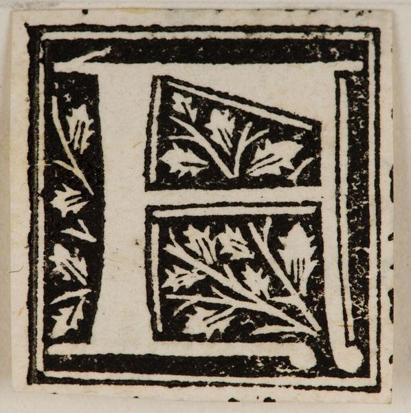 Editor: This intriguing initial "F" is an anonymous piece, whereabouts unknown, from the Harvard Art Museums. Its graphic quality is striking! What symbolic weight does it carry for you? Curator: Consider the visual language: the letterform intertwined with flora evokes illuminated manuscripts. These initials often marked significant passages. It speaks of origins, transitions, and a connection to something sacred. Editor: Sacred? In what way? Curator: It hints at cultural memory—a time when text was revered, each letter a doorway. It's a potent image, inviting contemplation of beginnings and the power of the written word. Editor: That's fascinating! I'll never look at a simple initial the same way again.