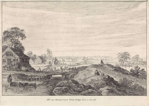 Pieter Hendrik Jonxis made this etching, "Landscape with Destroyed Cemetery of the Van der Capellen Family," in 1788. Jonxis chose etching, a printmaking technique, to document this act of iconoclasm. He used sharp tools to incise lines into a metal plate, which was then inked and pressed onto paper. The resulting print captures the stark contrast between light and shadow. Here, mark-making becomes indictment. The use of line emphasizes the sharp edges of the broken tombstones, conveying the violence of the destruction. Consider the labor involved: the careful work of memorialization undone by brute force. This resonates with broader social issues, as the desecration reflects the political turmoil of the time, where the established order was under threat. The print itself becomes a form of protest, preserving the memory of what was lost and holding the perpetrators accountable. By using etching, Jonxis elevates documentation to a form of social commentary, demonstrating how material and process can imbue an artwork with profound meaning.