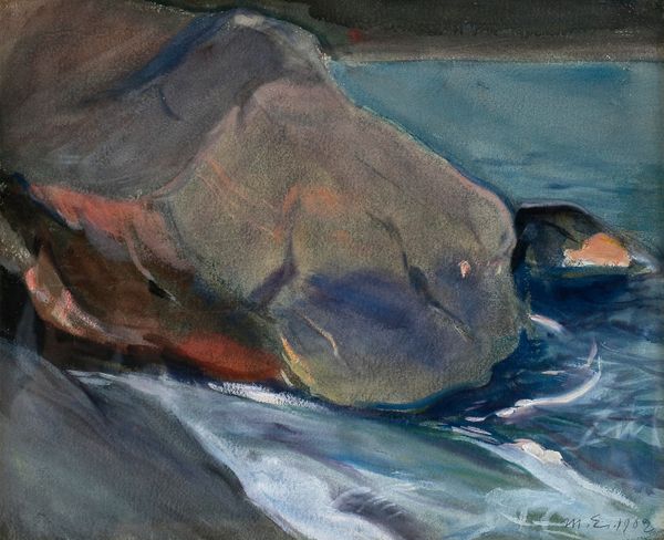 Editor: This intriguing watercolor, “Underwater Scene,” is by Edwin Austin Abbey. I’m struck by its fluidity, and how the blue washes create an almost dreamlike sense of being submerged. What do you see in this piece? Curator: The most immediate visual cue, for me, is the dream of the "other" dimension in the depth and how this scene carries psychological and emotional weight: The symbolism of water, its relation to purification, rebirth, and the unconscious... Does the symbolism resonate with you? Editor: I can see that – a sort of liminal space. The form are abstract. The work is less interested in describing a reality than pointing towards an experience. I wonder: How might this compare to similar underwater landscapes created closer to our time? Curator: Consider how otherness has been culturally visualized. Images of what lies beneath serve often a dual purpose: unveiling beauty, yet hinting at lurking, hidden, even monstrous aspects that disrupt our sense of mastery. Now look back at this piece -- does the symbol change depending on its viewers? Editor: That’s such an interesting way to consider the passage of meaning across time. Now that you mention it, it occurs to me that underwater scenery appears both tranquil and chaotic, full of potential beauty and also harboring unpredictable dangers. Curator: Exactly. What we visually consume and then project into an image becomes culturally internalized, eventually shaping collective meanings. We use these familiar, readily available symbols to navigate our inner selves. The "monsters," the unknowns, are often self-reflections of our deeper anxieties. Editor: I'll definitely look at this medium with different eyes going forward. Thanks for the context! Curator: It's been a pleasure. It will be intriguing to see how these cultural memories resurface with new visual twists in future artwork.