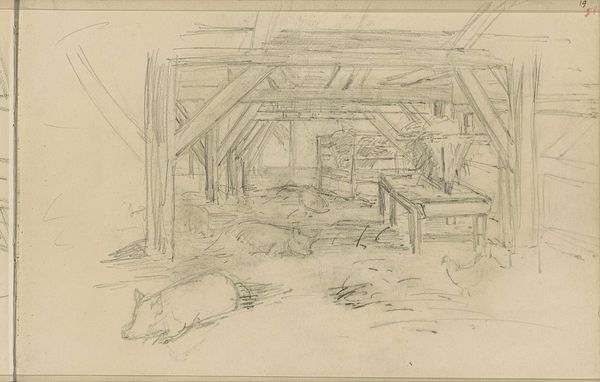 Jozef Israëls made this pencil drawing, "Interior of a stable with goats," sometime in the 19th century. It's a glimpse into rural life, but not without the conventions of the art world. Israëls was part of the Hague School, a group of Dutch artists who turned away from the grand historical painting of the academies and towards more intimate, everyday scenes. The subject matter of this drawing is, in part, a turn toward naturalism and an interest in the life of the common person. Notice, though, how the animals are carefully arranged, as in a formal portrait. The rough textures of the stable are rendered with an eye for composition, and it’s been suggested that Israëls's Jewish identity influenced his empathetic depictions of the poor and working class. To understand Israëls’ work better, we might look to periodicals and exhibition reviews from the period. These resources could give us a more vivid sense of the artistic debates that shaped his choices, reflecting the social values of his time.