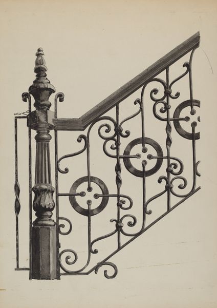 Florence Huston made this drawing of an Iron Fence. Here, the ironwork presents a fascinating display of symbolic ornamentation. Note the fleur-de-lis motif—a stylized lily—that extends from the central rod. This symbol is not merely decorative. It once represented French royalty, purity, and the Holy Trinity. Throughout history, the fleur-de-lis has undergone countless transformations, appearing in various guises across different cultures. The motif evokes a deep-seated sense of authority and cultural identity. The face at the bottom of the fence post peers out with an expression that speaks of a silent guardian. Thus, this iron fence, with its sturdy craftsmanship and meaningful symbols, is a reminder of the enduring human need to mark our territories and cultural values.