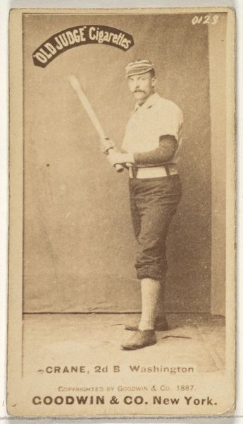 This is a baseball card of John A. “Jack” Farrell, the second baseman for the Washington Nationals, created around 1887 by Goodwin & Company for Old Judge Cigarettes. Baseball cards were not just innocent mementos; they were products of and active participants in the making of American masculinity at the turn of the century. These cards capture the intensity of a pivotal moment in American history, where industrialization and urbanization were rapidly reshaping social norms and the concept of leisure. Farrell stands here, caught in a pose that blends the era’s ideals of ruggedness with emerging celebrity culture. As professional sports began to capture the nation’s attention, athletes like Farrell became icons. Consider how the presentation of Farrell also reflects broader social issues of labor, class, and the construction of identity. These cards, distributed with tobacco products, literally intertwined habits and identities. They speak to the ways in which cultural artifacts like baseball cards are not simply reflections of society, but active participants in shaping our understanding of ourselves and others.