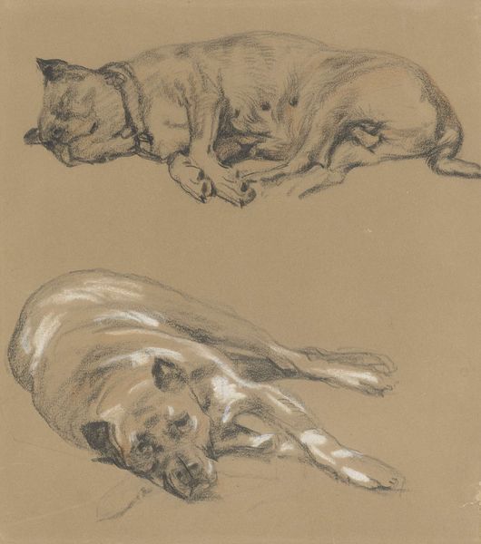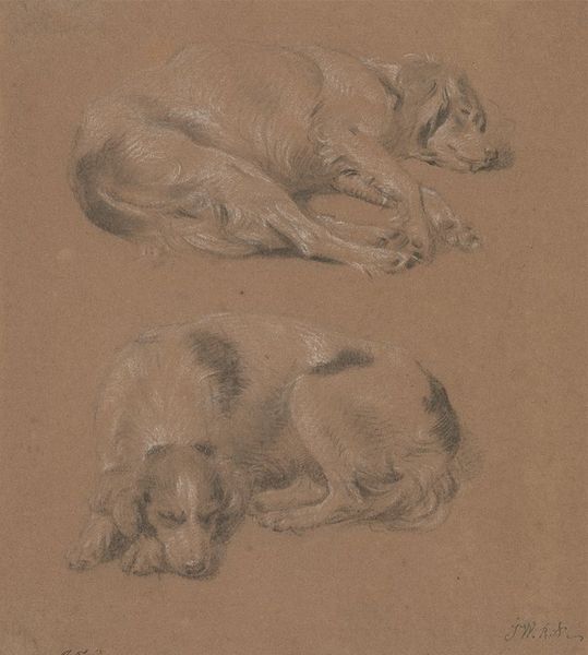 Editor: Here we have Julie Bell's "Afternoon Nap", rendered in pencil and charcoal. There's something very intimate and comforting in the simple rendering of this dog in repose. What stands out to you in this piece? Curator: What immediately strikes me is how Bell captures the vulnerability inherent in sleep. Consider the politics of rest – who is afforded the privilege of true relaxation without fear? Whose labor is consistently erased or devalued to the point where rest becomes a radical act? How does the portrayal of an animal at peace challenge societal expectations of productivity and service? Editor: That's a really interesting way to look at it, I wouldn't have considered those broader implications! The subject is, after all, a domestic animal who maybe *is* afforded that privilege, unlike, say, working animals. Curator: Exactly. Think about how the choice of medium further informs this dialogue. Pencil and charcoal, both readily accessible and relatively inexpensive, democratize the act of creation. Does the medium itself, then, suggest a certain accessibility or critique of elitist art practices? Editor: So you're saying even the materials carry meaning? Curator: Absolutely! And let’s not ignore the long tradition of animals depicted in art – often symbolizing fidelity, guardianship, or even serving as allegorical representations of human traits. Bell seems to subvert these historical constructs by presenting simply a moment of rest. Is that an act of resistance against symbolic burden? Editor: Wow, there is so much more here than I initially realized! I'm left thinking about the different ways we ascribe meaning, whether to animals or art itself. Curator: Precisely. It invites us to question our own projections and expectations around labor, leisure, and the inherent value of simply existing. It has certainly offered food for thought.