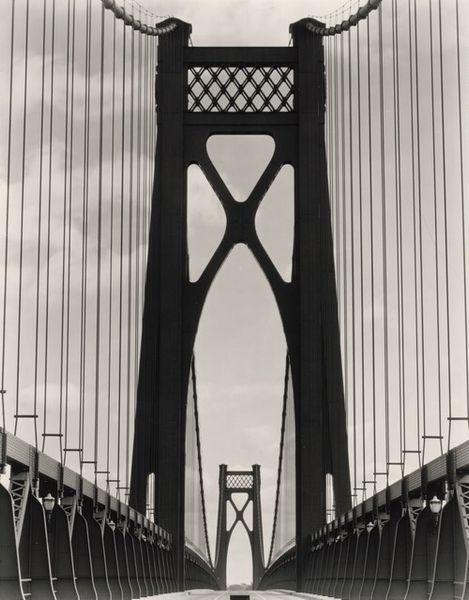 This black and white photograph, titled "Oakland Bay Bridge," captures a moment of transit across this iconic structure, likely taken sometime after its completion in 1936. The image, created by an anonymous artist, frames the bridge from the perspective of a car, placing us within the flow of early automobile culture in the United States. The Oakland Bay Bridge itself isn't just a feat of engineering, it's also a symbol of modernity and connectivity, reflecting the burgeoning car culture of the era and it also facilitated the expansion of urban areas. Constructed during the New Deal era, the bridge served as a public works project, offering much needed employment during the Great Depression. To fully understand this photograph, one might delve into archives documenting urban development, transportation history, and the social impact of infrastructure projects. The meaning of art lies not only in its aesthetic qualities, but also in the social and institutional contexts that shape its creation and reception.