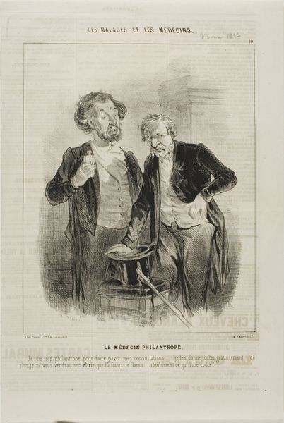 Honoré Daumier made this print, titled "Un léger manuscrit," using lithography, a process of drawing with a greasy crayon on a stone and then printing the image. It's a direct medium, and here you can see the marks of the crayon, built up to create areas of shadow and texture. The quality of line is what gives this print its character. Daumier has varied the marks to create a sense of volume and space, and bring us into this intimate moment between two men. You can imagine the artist at work, using a sharp tool to bring out the image. Daumier was very interested in the theater, and the social dynamics of Paris. This image probably reflects the daily realities of many artists and playwrights at the time, as they tried to gain approval from theater directors. This print is a reminder that images are made through labor, and that the circumstances of production can influence the final result.