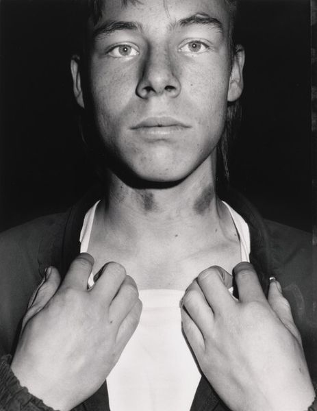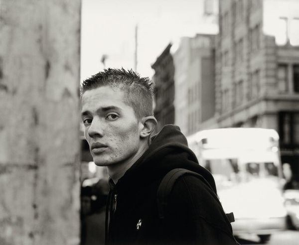 Jim Goldberg's photograph, "Hollywood and Highland #4," captures a face, a moment, a whole world in shades of gray. It's all about light and shadow, the way they define the planes of his face, the set of his jaw, the fall of his hair. Look at the almost painful intensity in this person’s expression, that deep-set gaze drawing you in. There's this incredible texture in the grain of the photograph, a kind of grit that feels so human, so real. Goldberg plays with depth, blurring the background to keep our focus tight on the face. It’s like he's saying, "Pay attention, this is important." Think about the way Nan Goldin’s snapshots capture the fragility of human experience, or the intense gazes in Rineke Dijkstra’s portraits. Art is all about seeing, feeling, and then finding a way to make others see and feel it too. Goldberg nails it.
