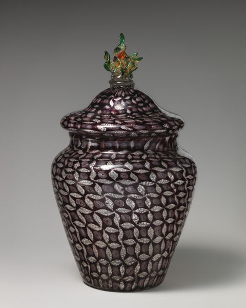 Editor: This is Yayoi Kusama’s "Pumpkin" from 1983, made of ceramic. The cheerful yellow, covered in dots, almost hides the strange form. What do you see in this piece, beyond the obvious? Curator: Kusama’s pumpkins are so much more than just decorative gourds. In examining this work, it is important to reflect on the artist's deeply personal connection to them. Kusama has spoken of pumpkins as a source of comfort and stability since childhood, seeing in their humble form a sense of groundedness, of self. This seemingly simple sculpture invites us to consider questions around identity, repetition, and the subconscious, filtered through her lifelong struggles with mental health. Does the polka dot pattern remind you of anything? Editor: I suppose the all-consuming aspect of polka dots has something to do with her mental health problems? Curator: Exactly. Her obsessive use of polka dots is both a symptom and a strategy. They represent a way for her to confront and dissolve her anxieties. So in viewing this sculpture, we have to consider Kusama's artistic practice as an act of resistance against societal norms and expectations. Also, her interest in expanding these ideas of self into questions about women, race, class, and global politics. What would you say? Editor: So the pumpkin is an invitation to question not just our perceptions of form, but also our societal structures? I didn’t expect that. Curator: Indeed! The vibrant color and playful form also belie the deeper socio-political undercurrents within Kusama's broader body of work. Thinking about her performance pieces in the ‘60s protesting the Vietnam War is really enlightening when approaching any of her later artworks. Editor: That puts a whole new spin on pumpkins. Thanks!