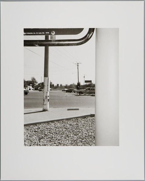 Curator: This intriguing black and white photograph is "Untitled (emergency light on barrier in front of house)" by John Gossage. Editor: It feels…quietly ominous, doesn't it? That bulb trapped in its cage, like a warning unheeded. Curator: Gossage often found beauty in the mundane, wouldn't you agree? The emergency light, the street corner, they become symbols. Editor: Symbols of neglect perhaps? Or maybe the futility of trying to control the uncontrollable. The caged light feels like a visual metaphor for anxiety, all that potential energy contained. Curator: I like that reading. It transforms the ordinary into something deeply resonant, hinting at deeper societal anxieties. Editor: Exactly. Art doesn’t always need to scream; sometimes a whisper is enough to keep us up at night.